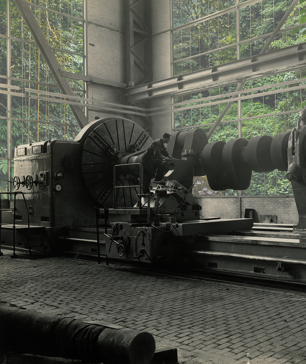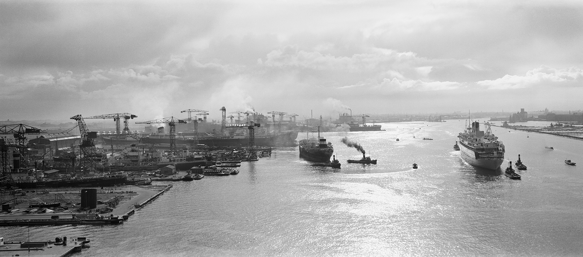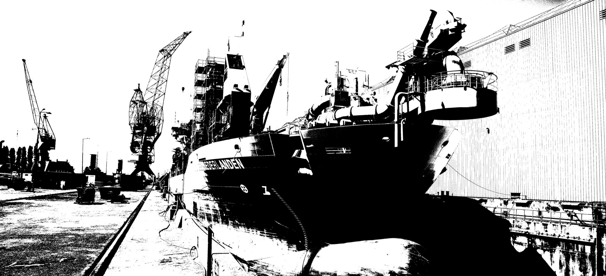 Voor Damen Shiprepair Rotterdam maakten we verschillende bewerkte afbeeldingen. Hier hebben we ervoor gekozen de huidige werf, met haar dokken, kades, kranen en activiteiten vast te leggen en naar binnen te halen. Om de beelden tijdloos te maken hebben we ze geabstraheerd naar twee kleur tinten.